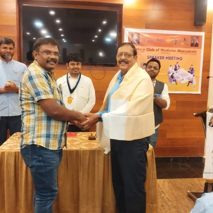Speaker meeting on behalf of Rotary Club of Madurai Meenakshi today morning Rotarian Ramanathan great speech made the association members think many things more than one hour great speech thanks Rtn.Ramanathan brother.